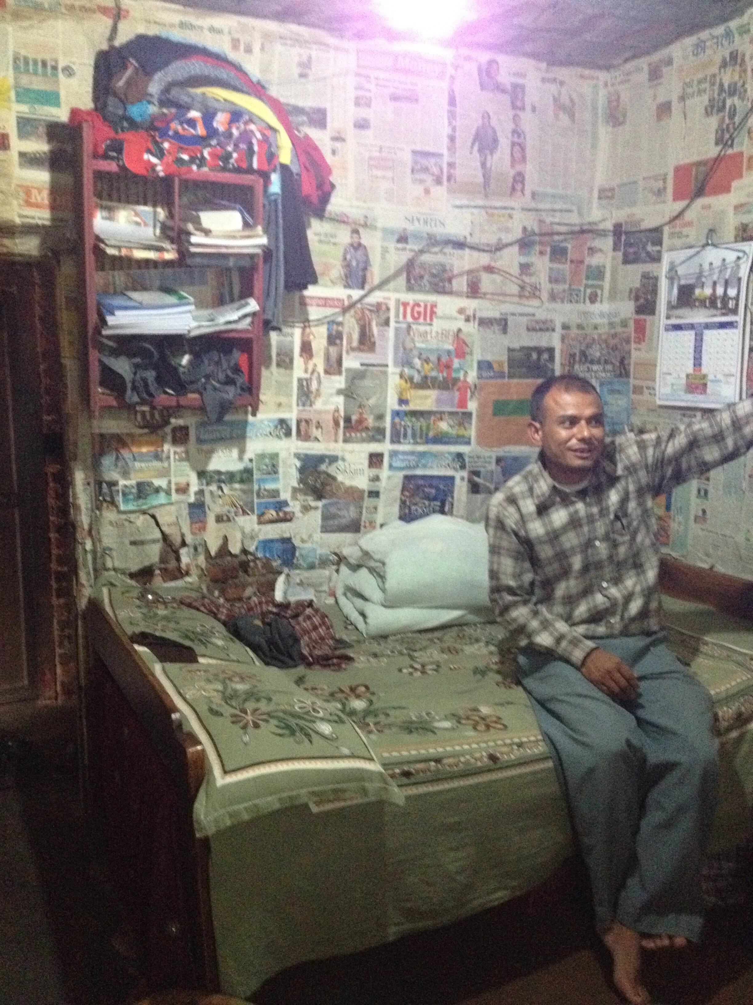 I can barely see so I hold out my arms to brush the walls of this dark corridor, giving me a minimal sense of balance and comfort. I follow the voice of the boy's Father. A dim bulb is switched on ahead and I turn into their small room, grateful for the light. Father graciously urges me to sit. The only option is on one of the two beds that sit knee to knee and take up almost the entire room. This is home to four people: the students Bidek and Bisho and their parents, both of whom work at poorly paid labor jobs. They are fortunate to have work…